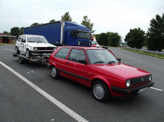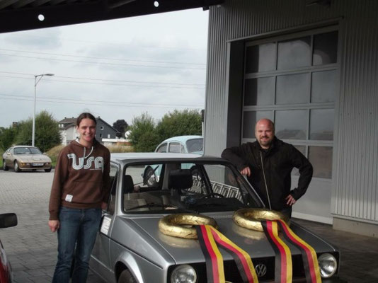 Während unser Interesse an den Fahrten ständig wuchs und die Sehnsucht nach einem 30 Jahre alten Fahrzeug ins Unermessliche stieg, saßen wir gegen Ende 2009 Dank Dieters Hilfe in einem tollen, silbernen Diesel-Gölfchen der ersten Baureihe. Wir waren wahnsinnig stolz und fuhren sofort am Wochenende darauf unsere erste Veranstaltung in Olpe und anschließend den letzten ECC-Lauf in Eupen. Damals hätten wir nie gedacht, wie bekannt dieses silberne Gölfchen einmal werden würde. Und ehrlich gesagt, realisiert haben wir das bis heute auch noch nicht.